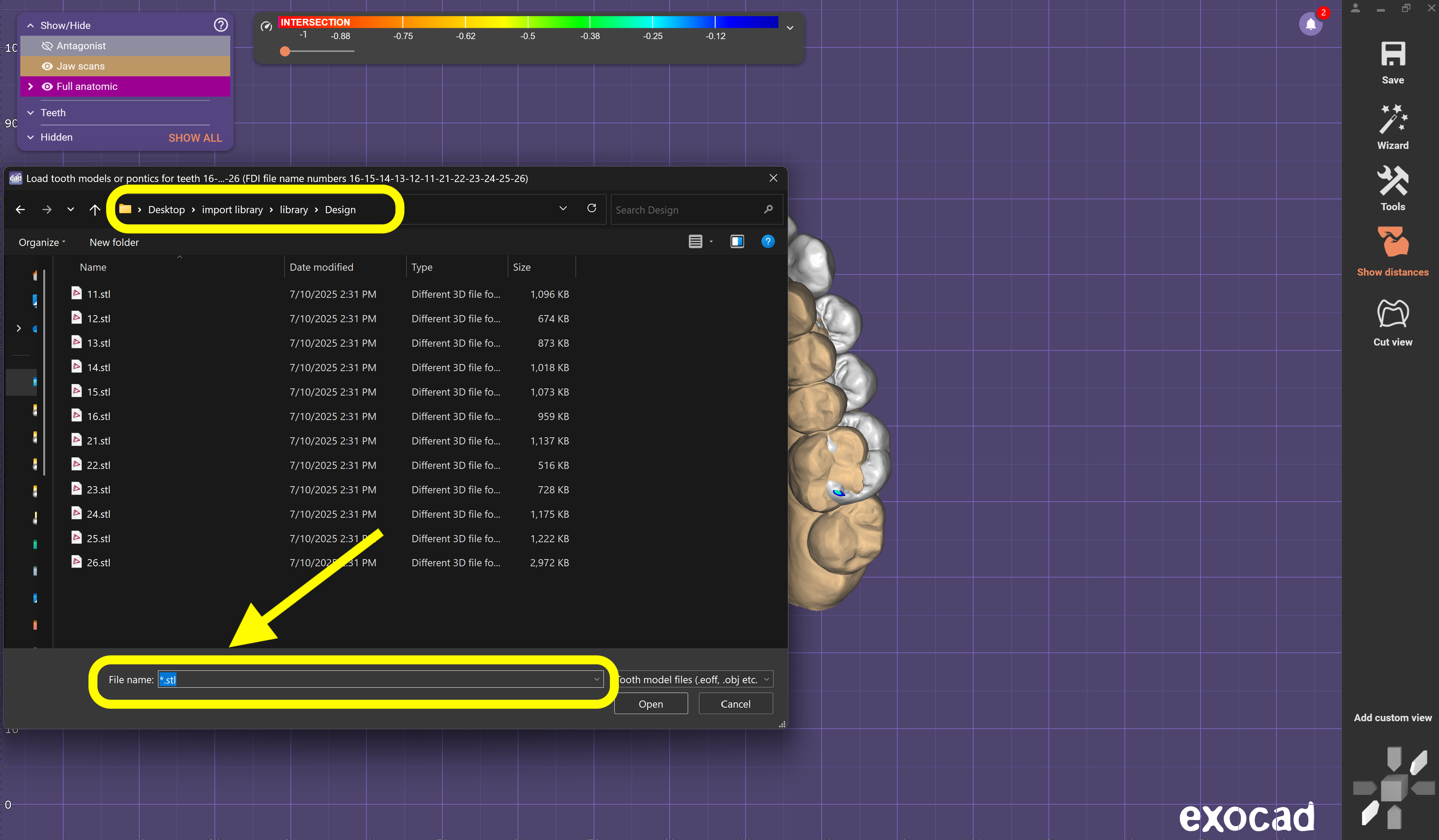 Standardmäßig sucht Exocad nach .eoff-Dateien.