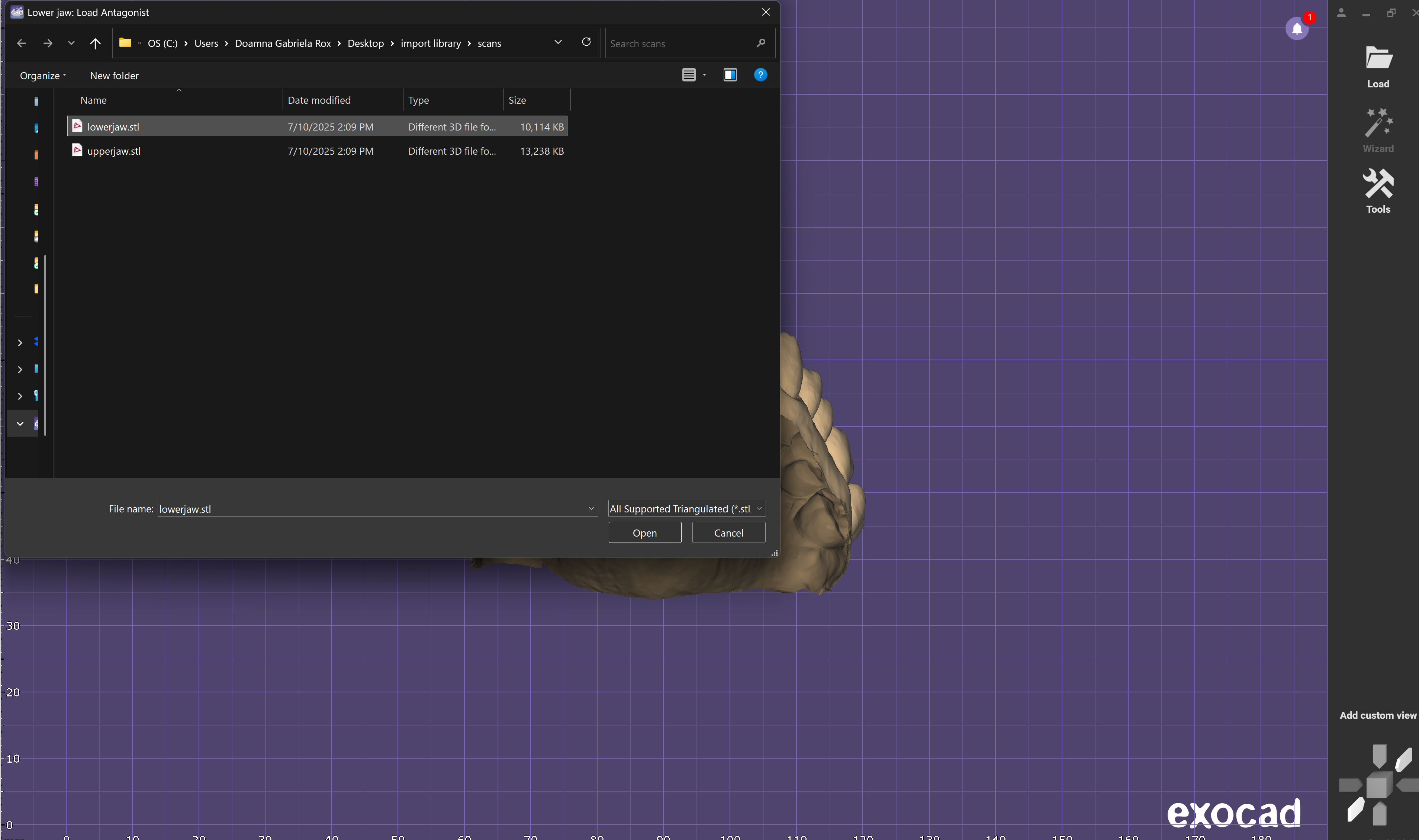 - Wähle im Kontextmenü „Benutzerdefinierte Zahnmodelle laden“