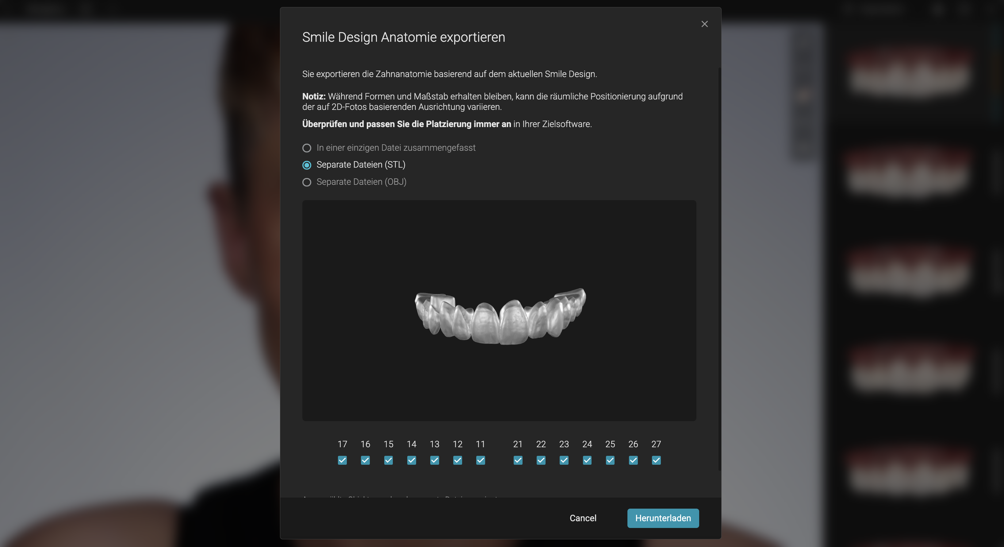 → Es wird eine ZIP-Datei mit STL-Modellen der designten Zähne generiert