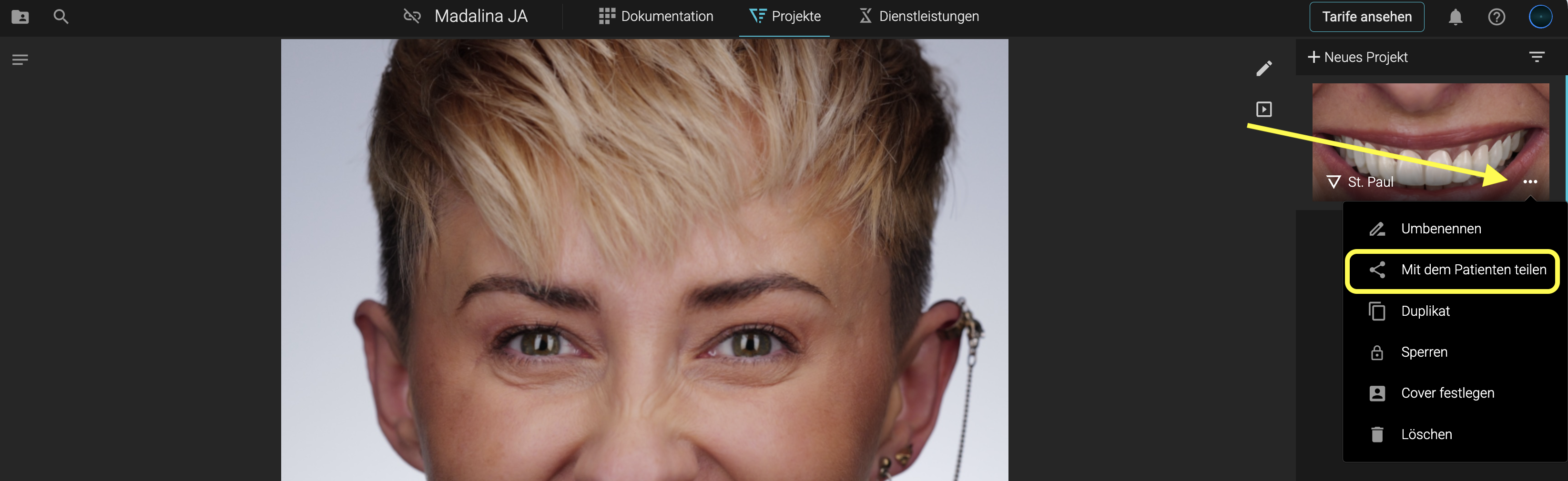 Du kannst die Videos aus der Galerie herunterladen und deinem Patienten senden – oder die Simulation direkt über die