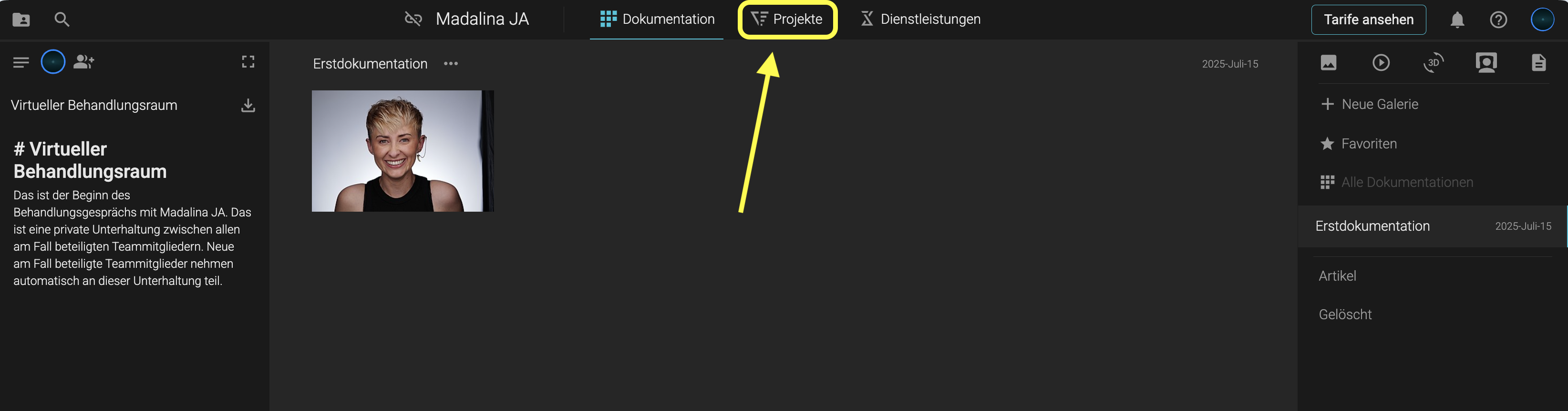 Oder, falls im Fall bereits Projekte erstellt wurden: