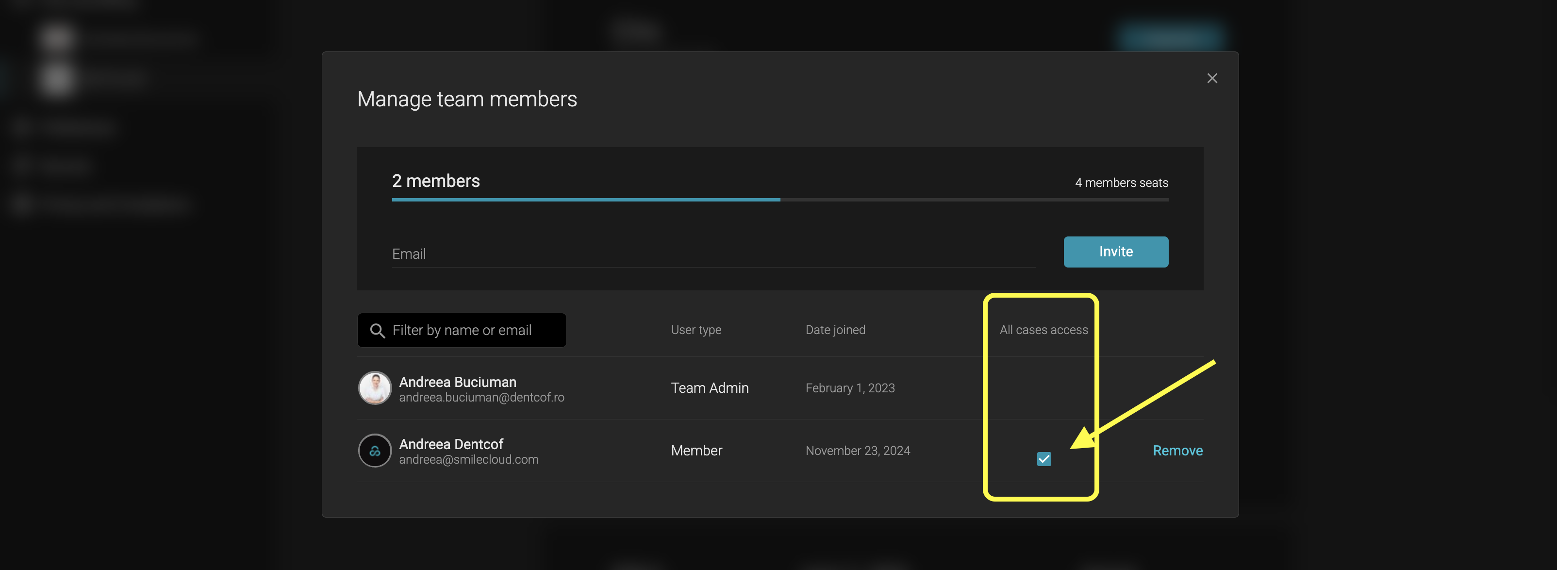 - If a team member leaves, you can remove them instantly, and their cases remain part of your clinic account.