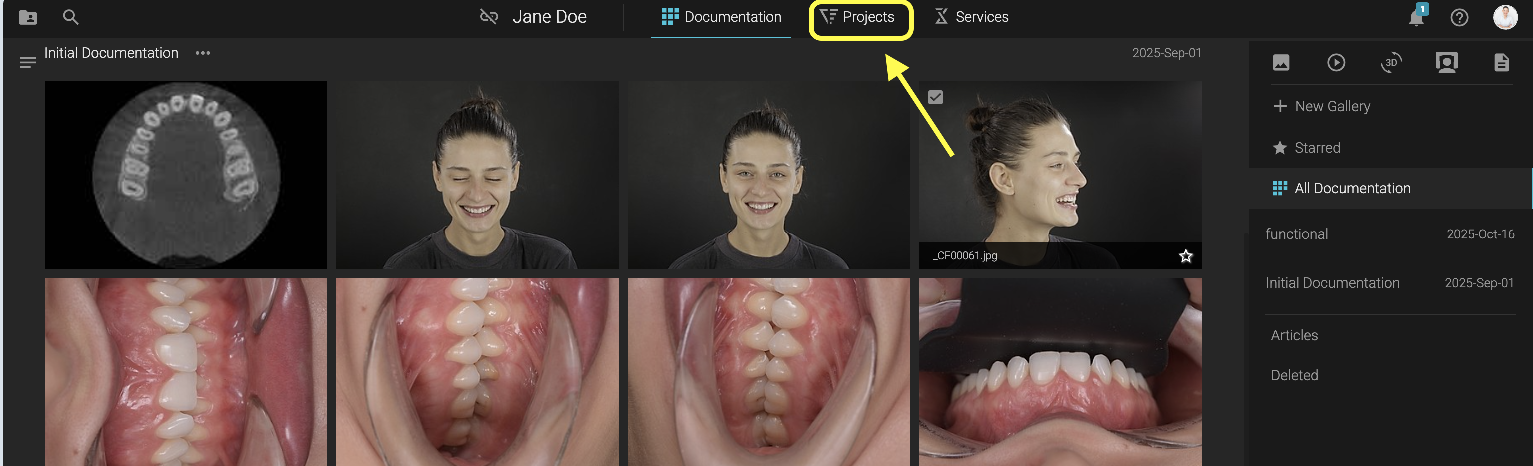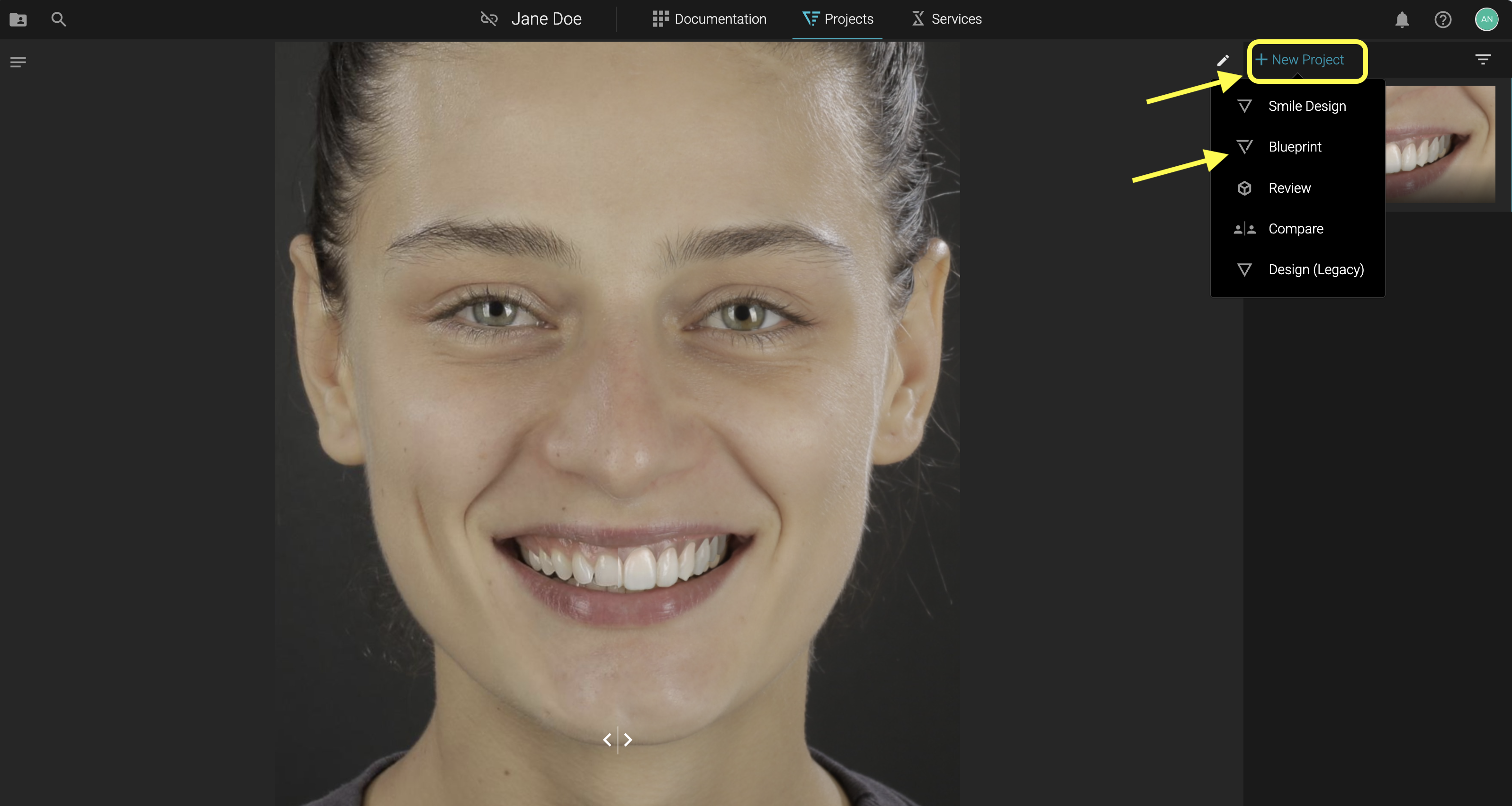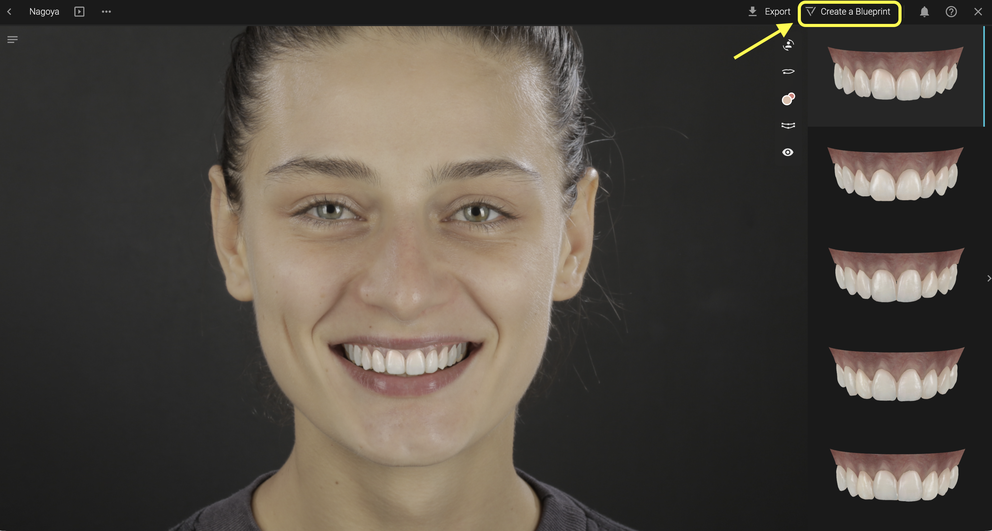 - If a Smile Design was previously created, open the Smile Design in edit mode -> click on the direct button to start a Bluprint