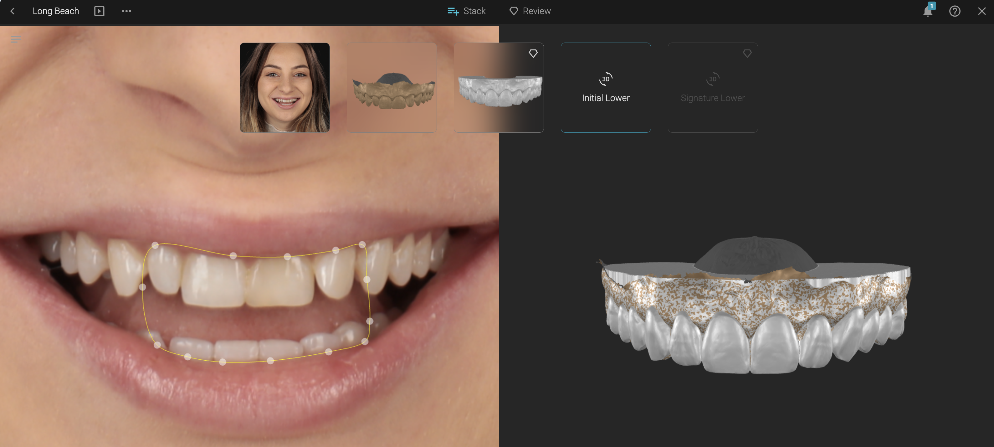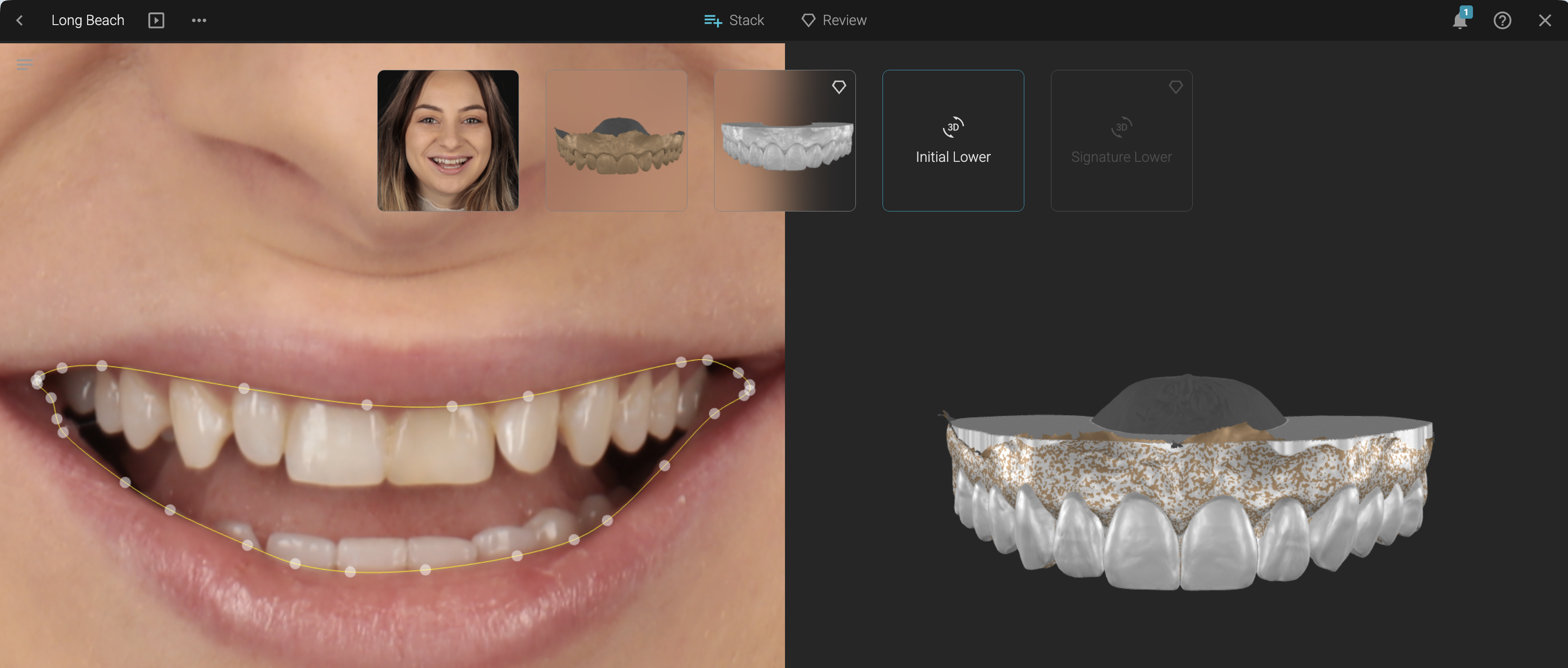 - Adjust the inner lip contour to refine the render zone.