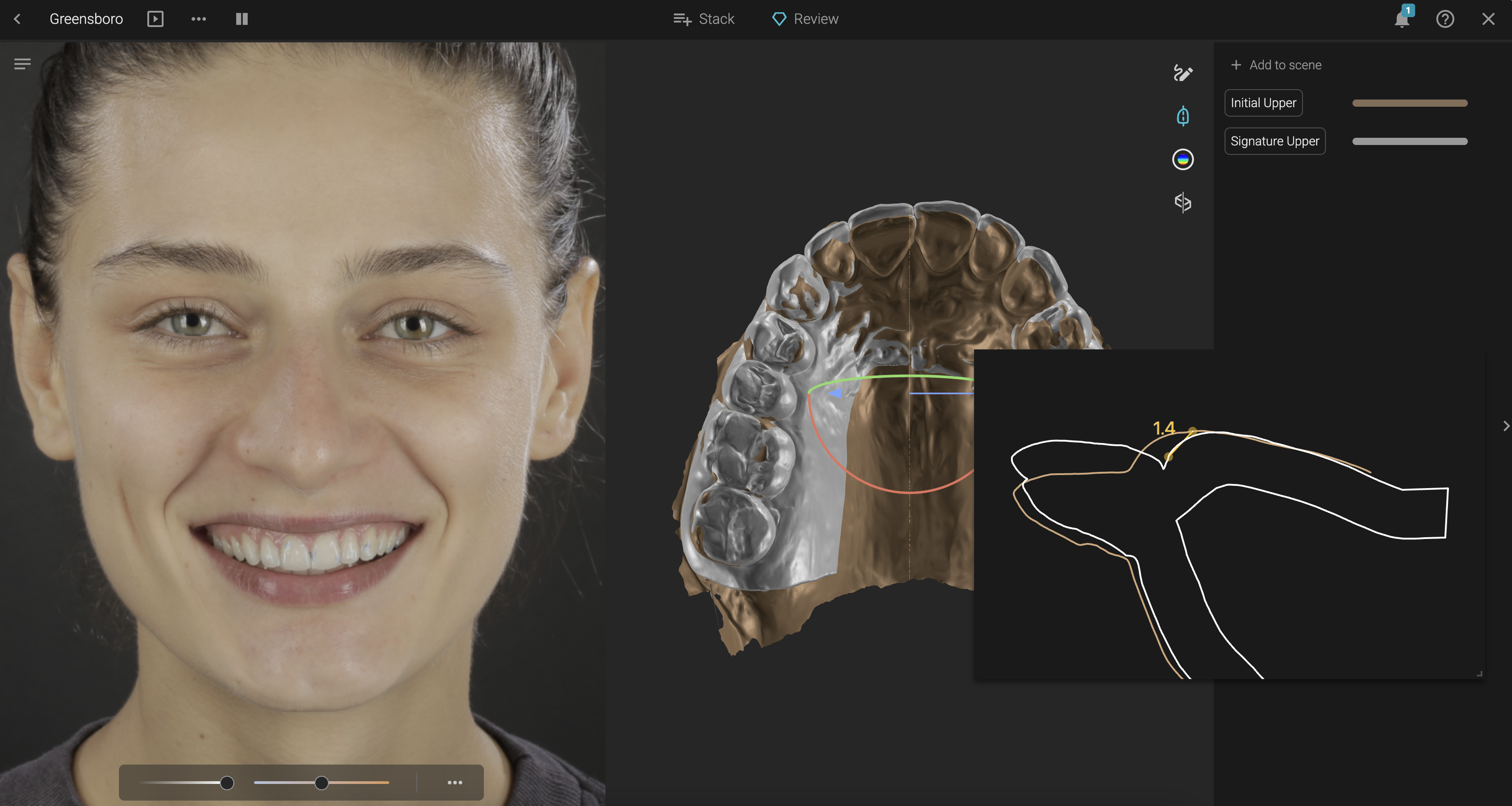 Signature Design is a new render-only project type in Smilecloud that allows you to create before-and-after photo and video simulations and 3D review scenes from a single STL surface file.