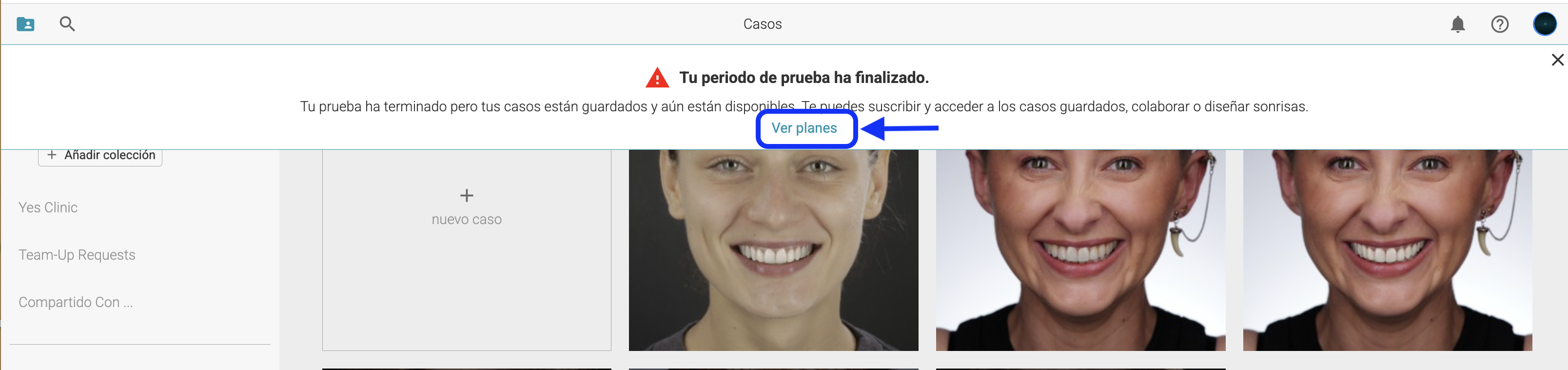 Si tu prueba ha terminado, verás un banner: “Tu período de prueba ha finalizado.”
