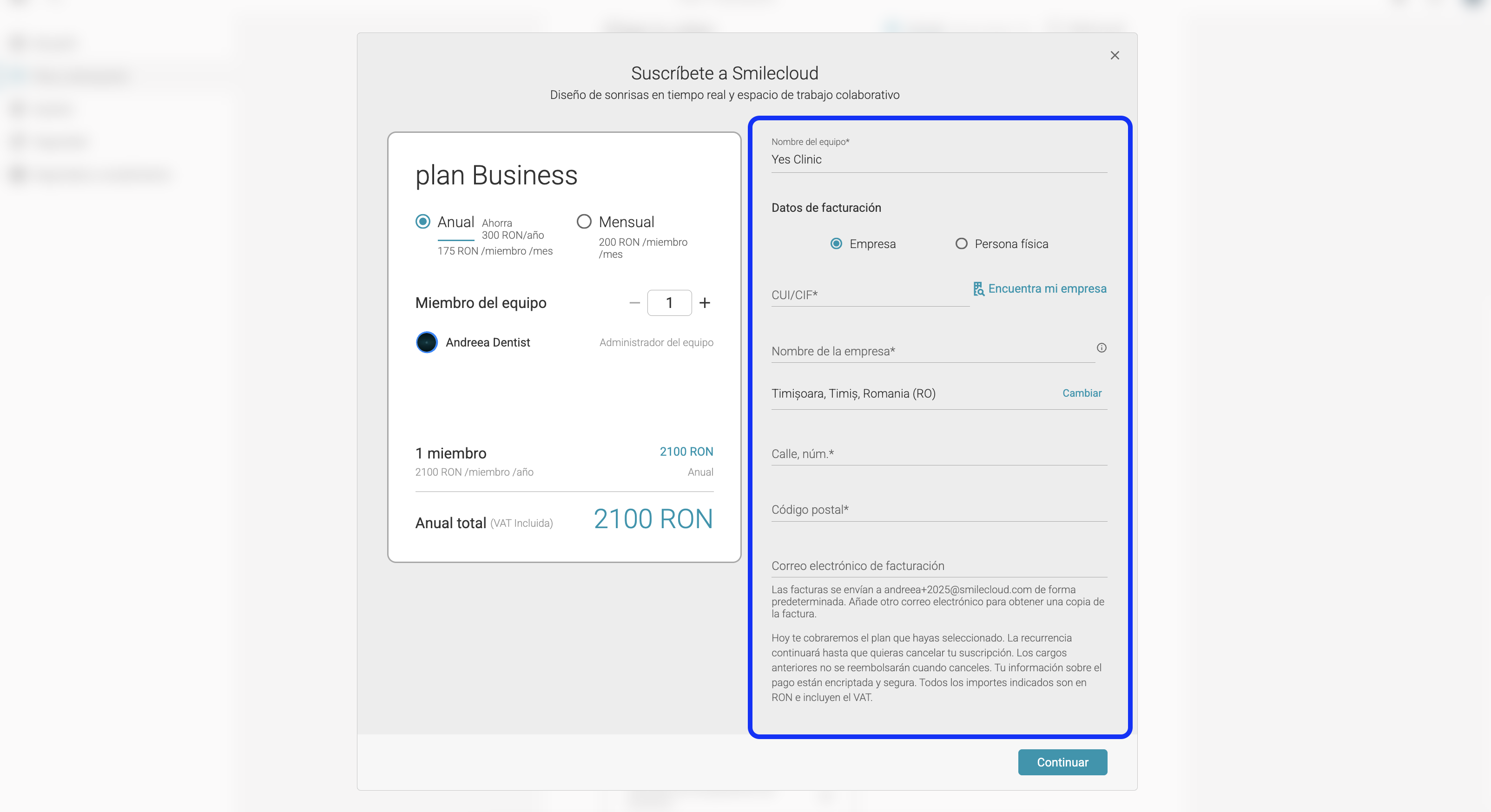 Introduce los datos de tu tarjeta, confirma el cargo y finaliza. Serás facturado de inmediato y la suscripción se renovará hasta que la canceles.