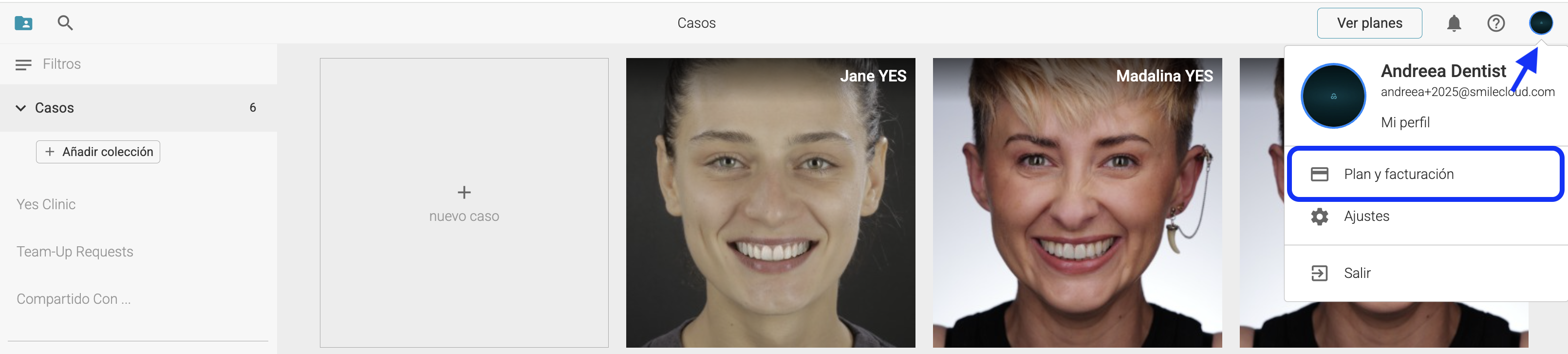 - O abre Mi cuenta desde tu avatar (arriba a la derecha) → Plan y Facturación