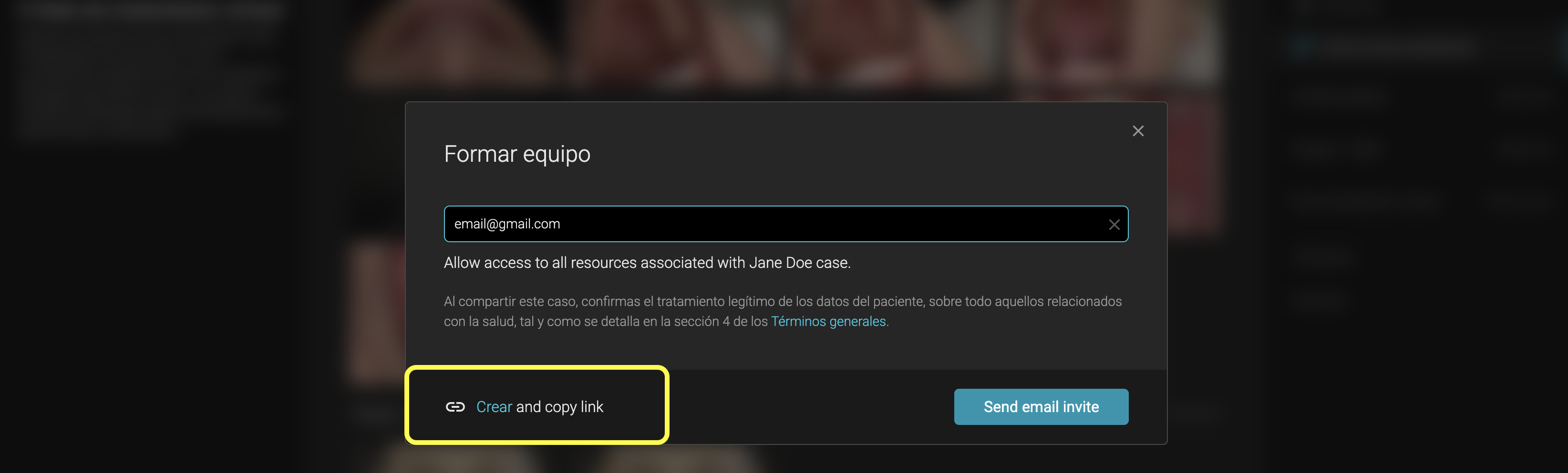 La función de Enlace de Colaboración permite invitar a profesionales dentales a colaborar en un caso durante 24 horas, incluso si no tienen una cuenta de Smilecloud.