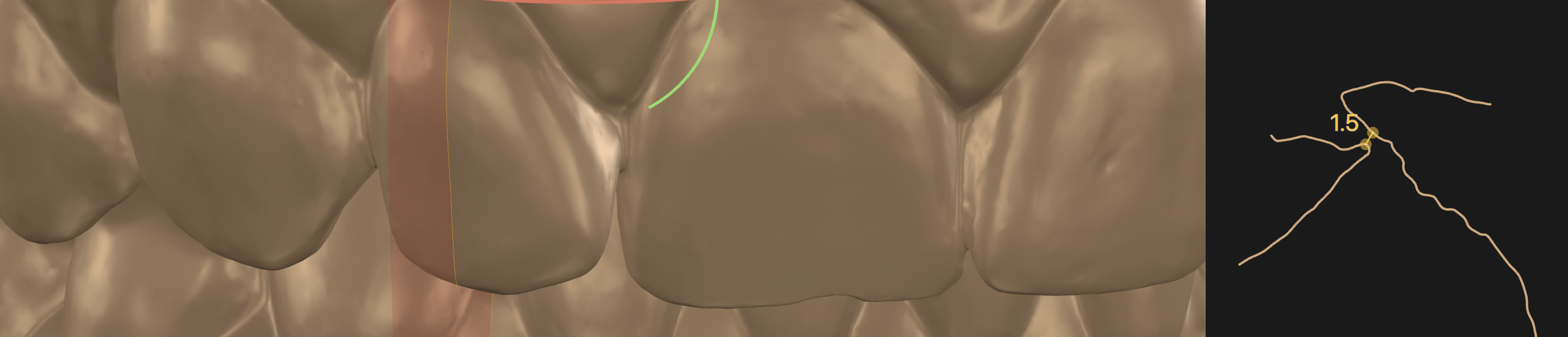 Haz doble clic para medir con precisión entre dos puntos en 3D. Perfecto para revisar niveles óseos, espacio restaurador o altura gingival.