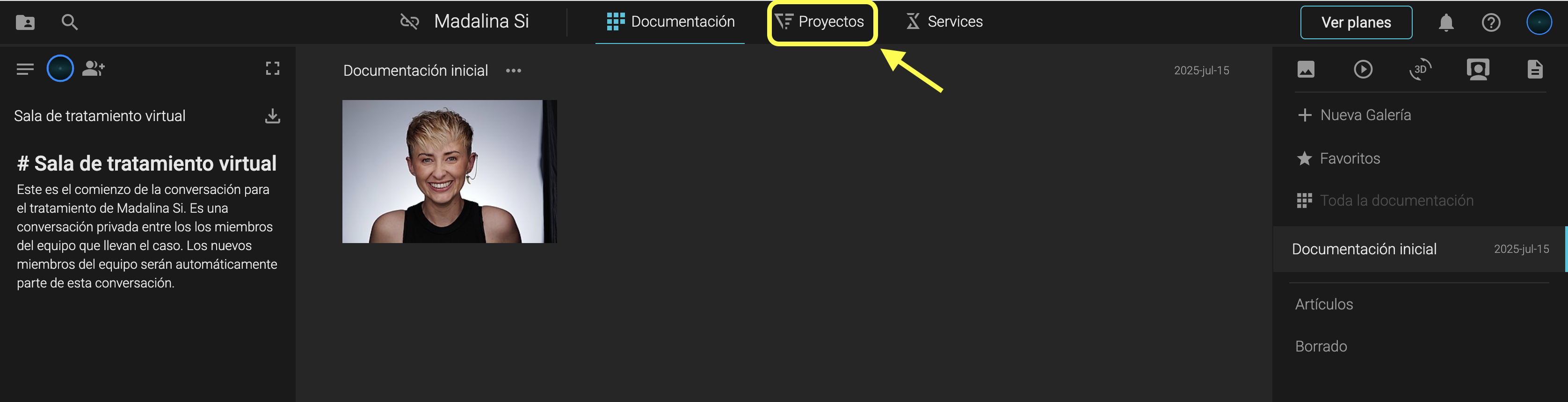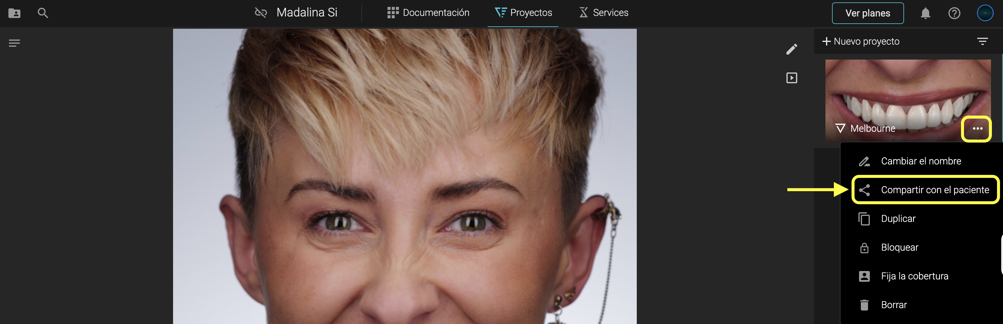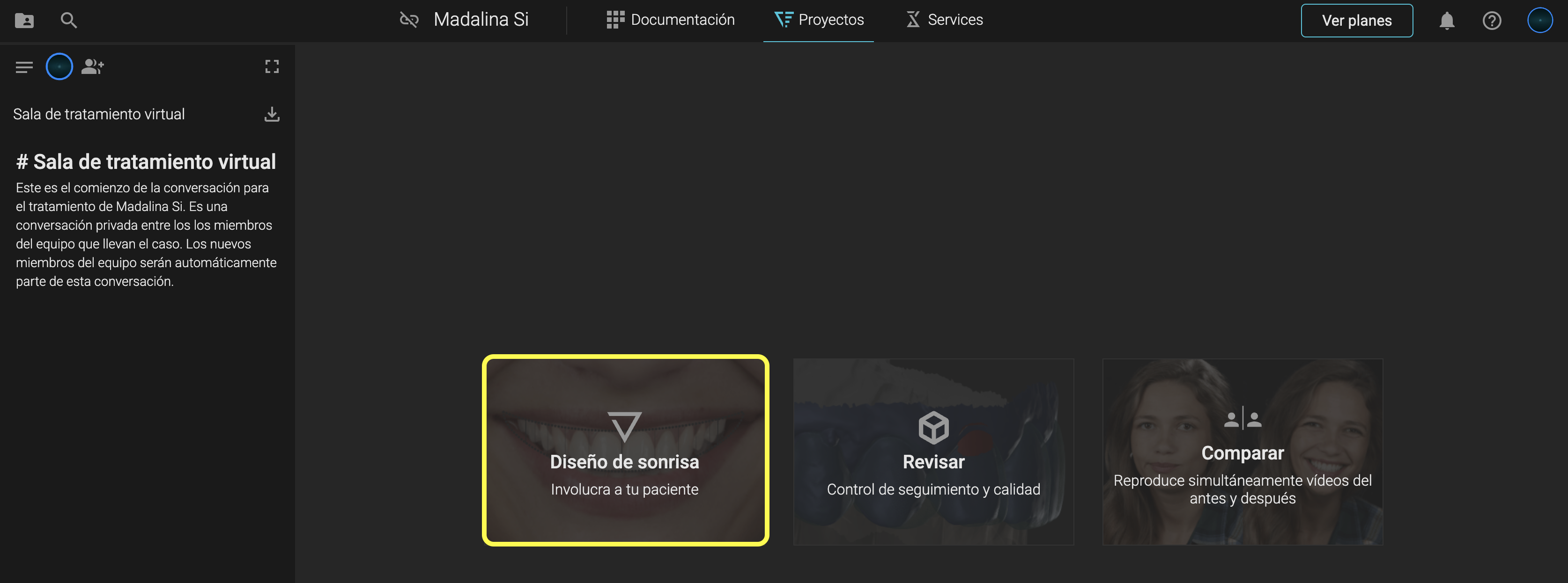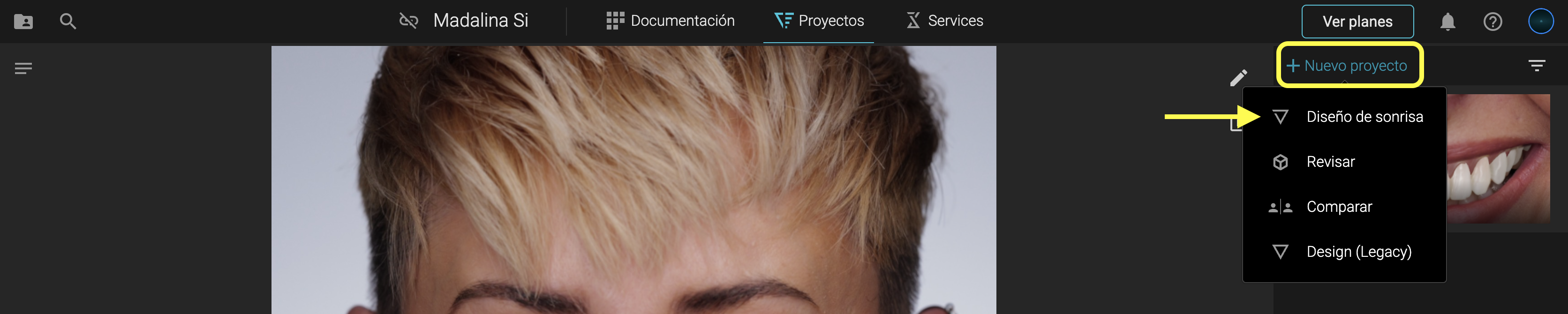 Haz clic en Proyectos → Diseño de Sonrisa