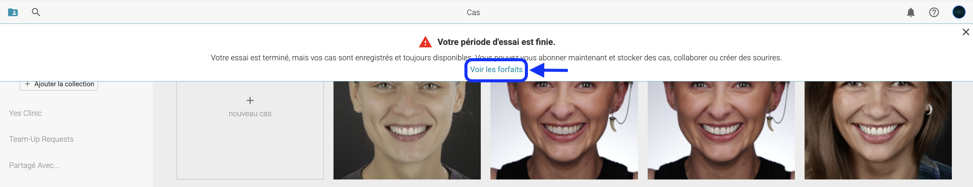 Si votre période d’essai est terminée, vous verrez une bannière : « Votre période d’essai est terminée. »