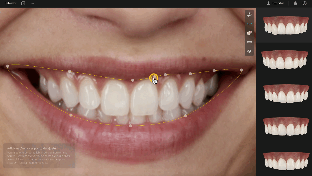 A linha dos lábios é detectada automaticamente por IA, mas pode ser ajustada manualmente: