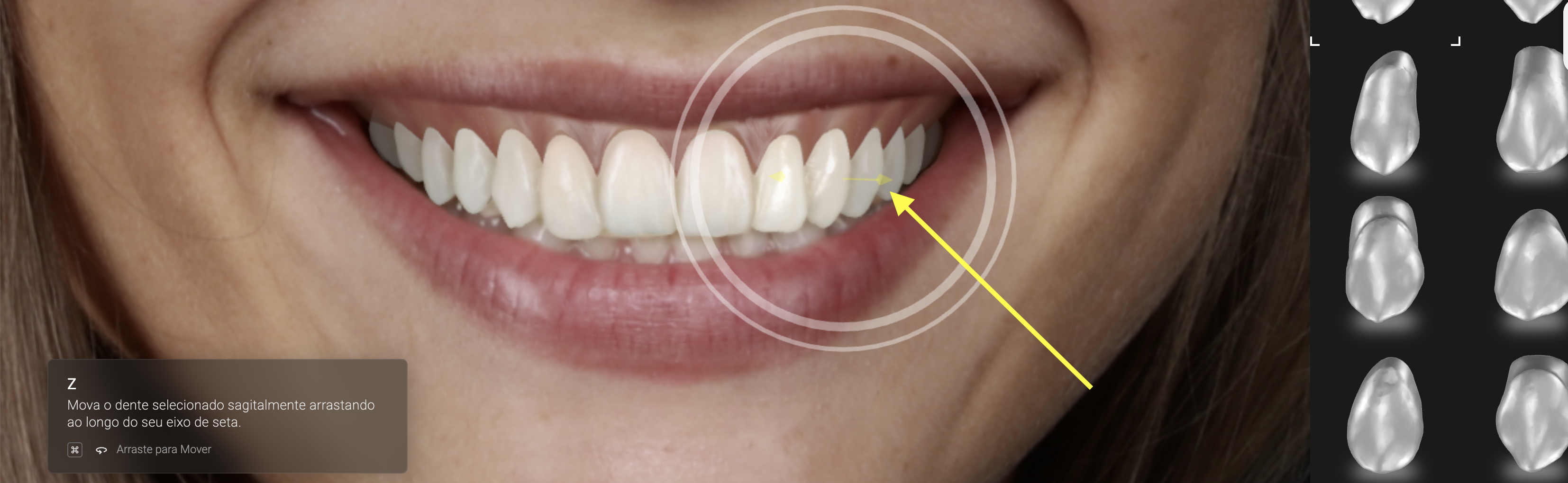 - Reposicione todo o espaço de restauração para visualizar diferentes cenários e explorar abordagens ortodônticas e protéticas. Esse ajuste também determina o nível de exibição gengival.