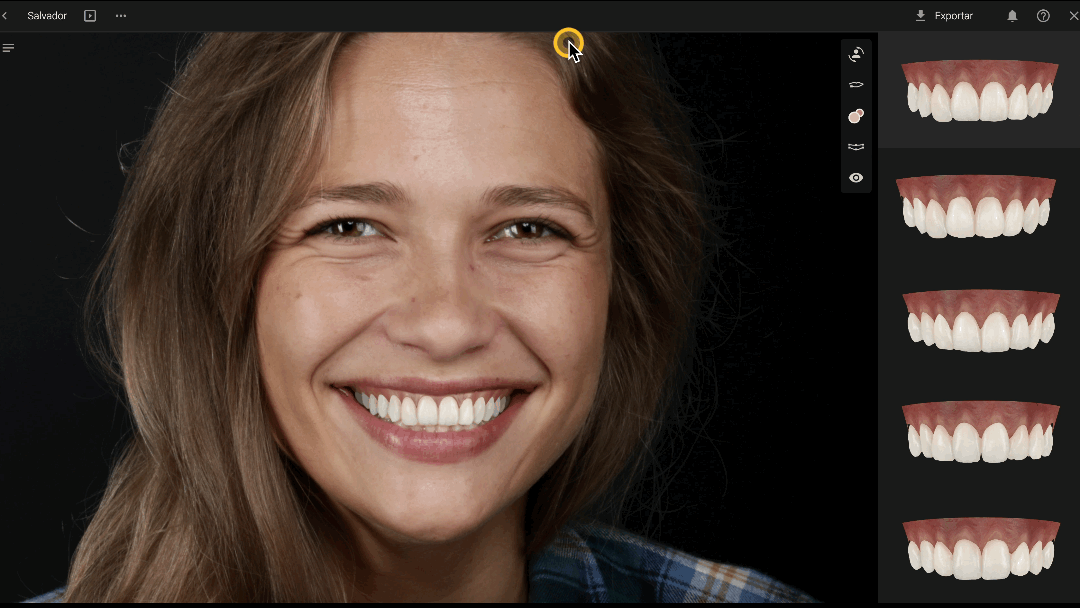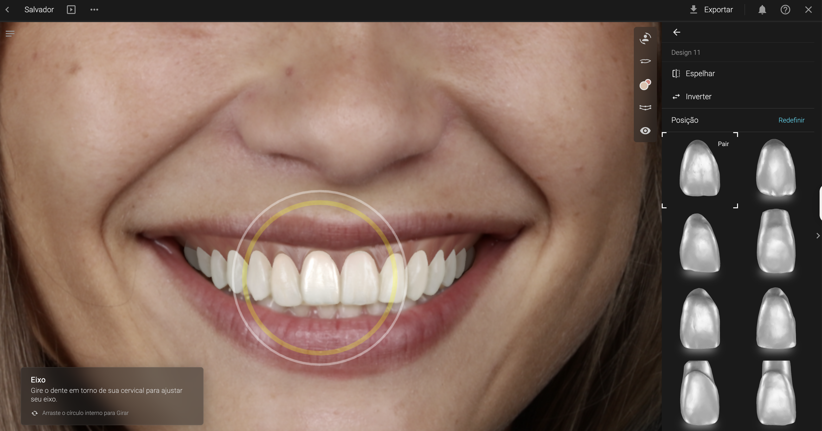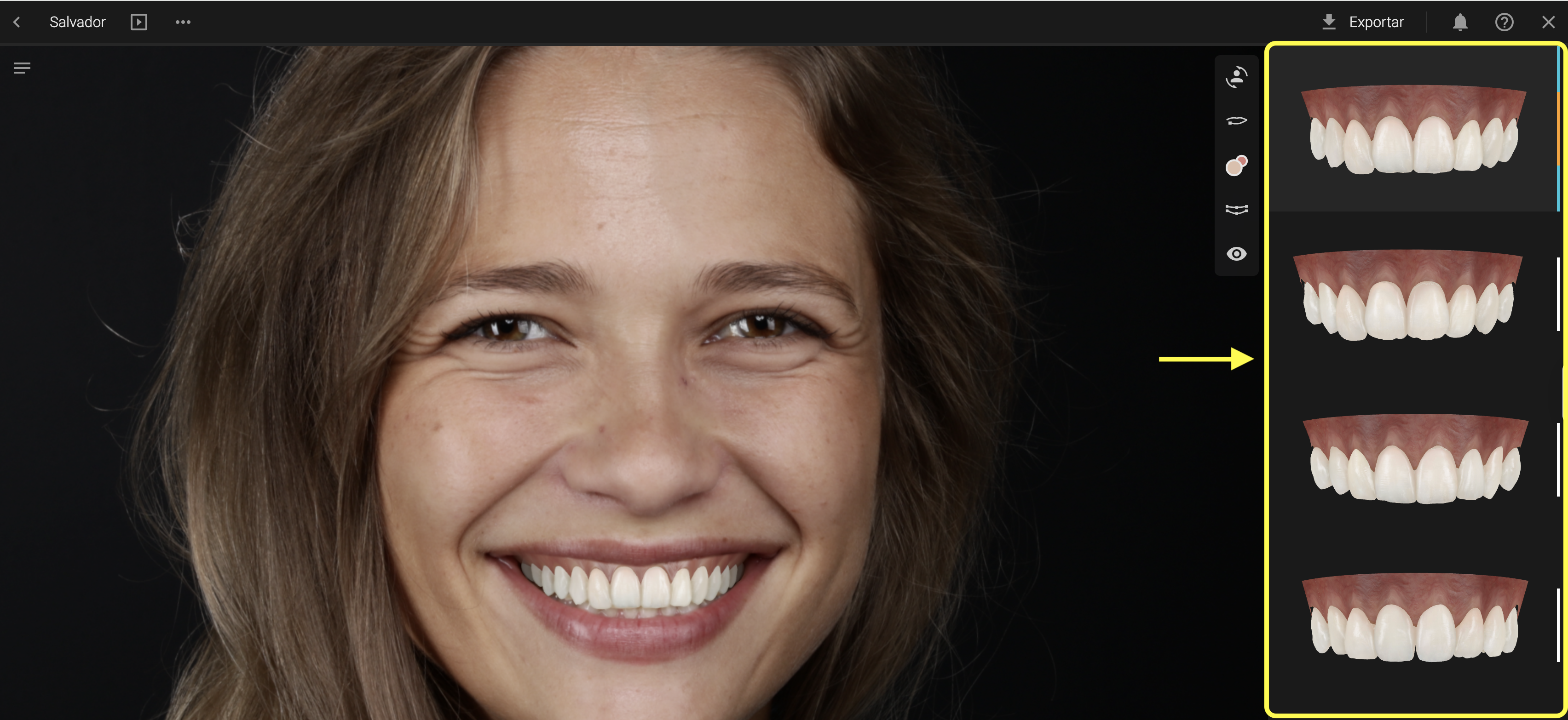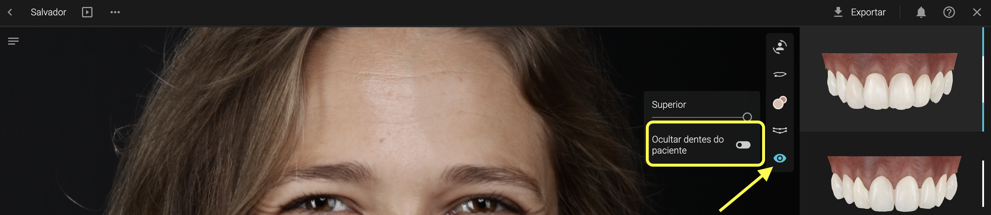 Basta alternar a opção para ocultar a dentição original e visualizar apenas o seu design.