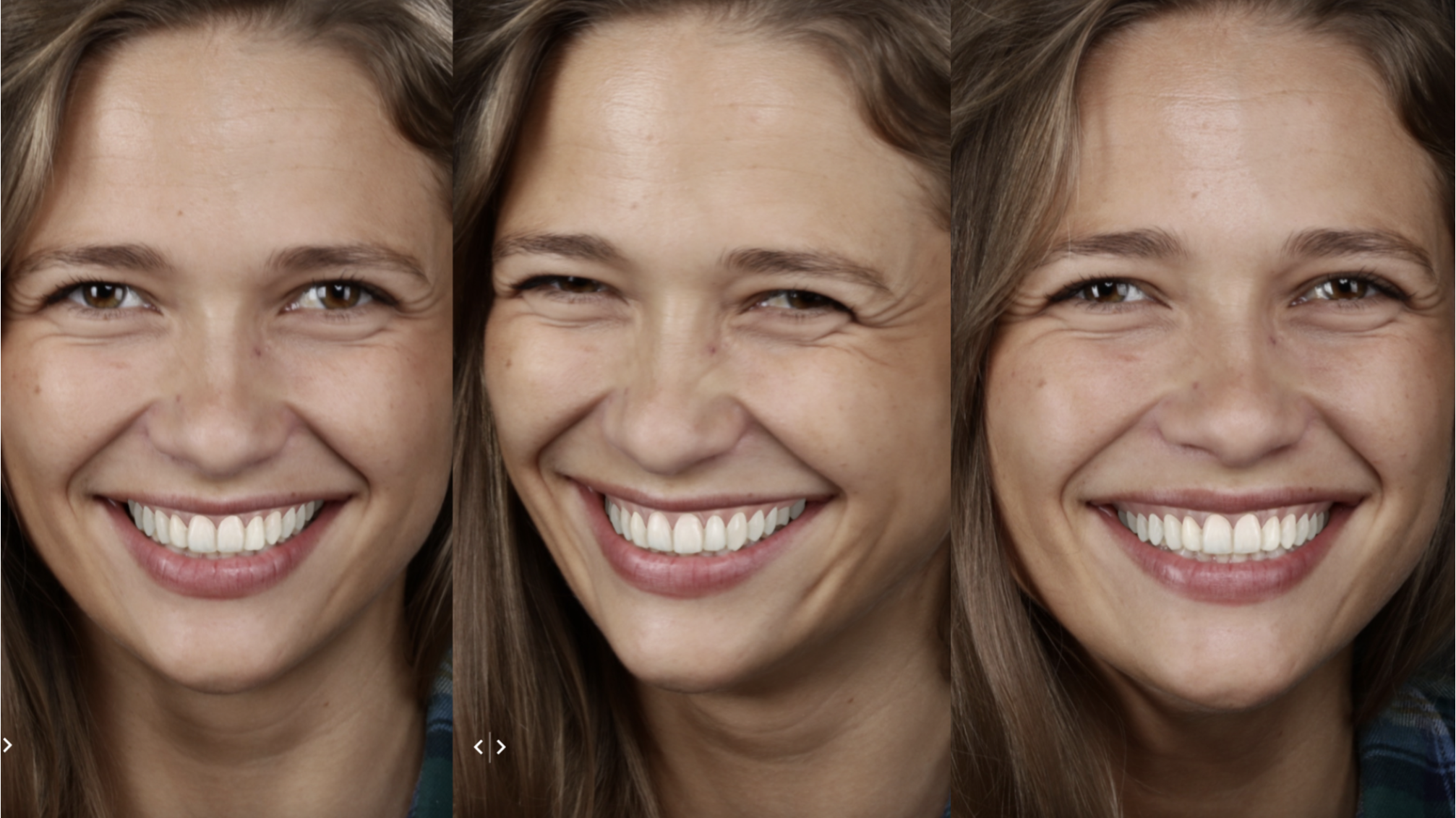 - Ajuste a curva incisal para modificar a exibição dos dentes, sobremordida, comprimento dos dentes, proporções e a forma das papilas — buscando uma aparência equilibrada e natural.