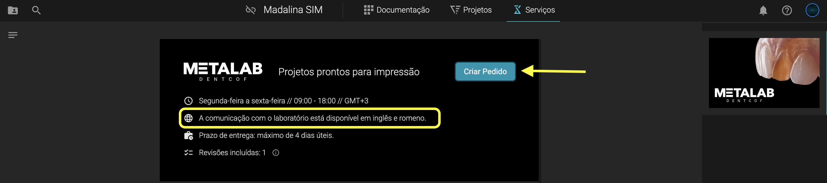Todos os serviços digitais do Metalab são entregues em até 4 dias úteis, facilitando a integração ao seu cronograma clínico.