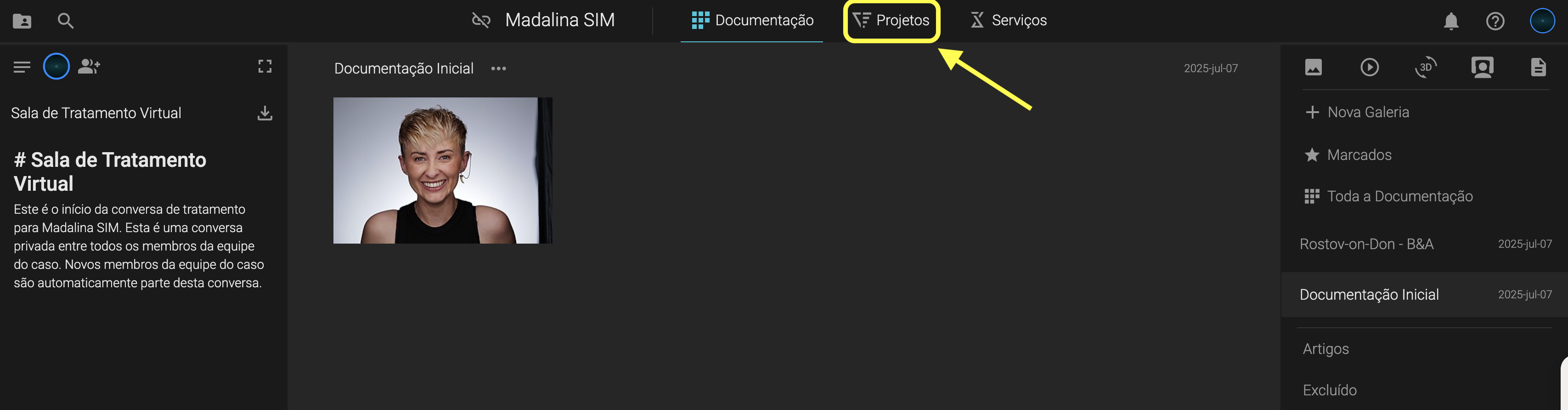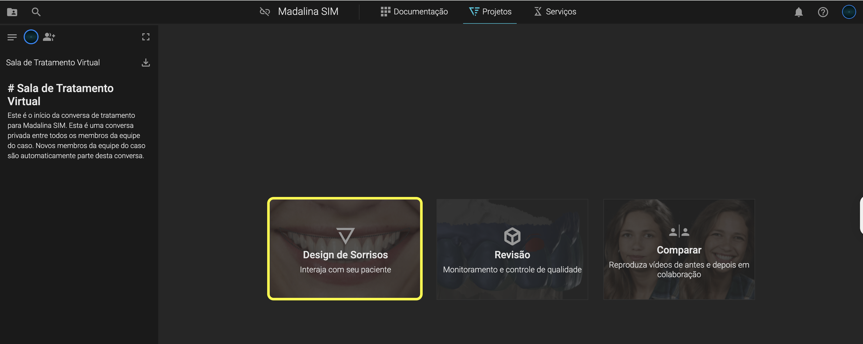 1. Clique em Projetos → Design de Sorrisos