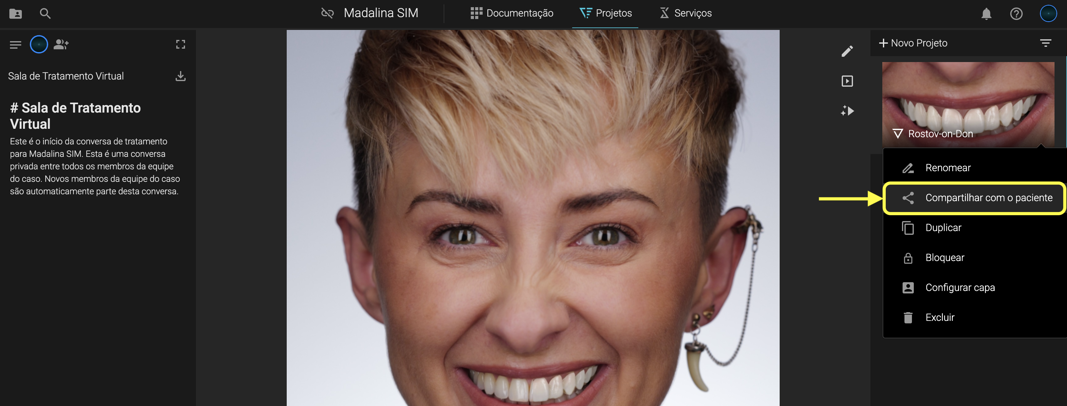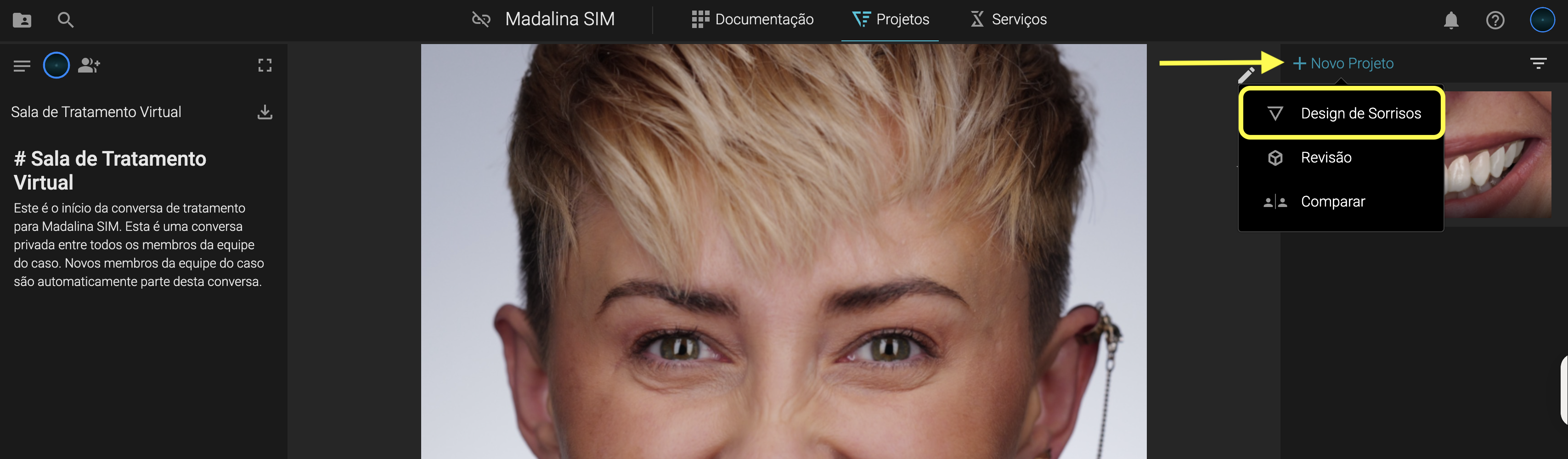 Ou, se já houver projetos criados no seu caso, clique em Projetos → Novo Projeto → Design de Sorriso