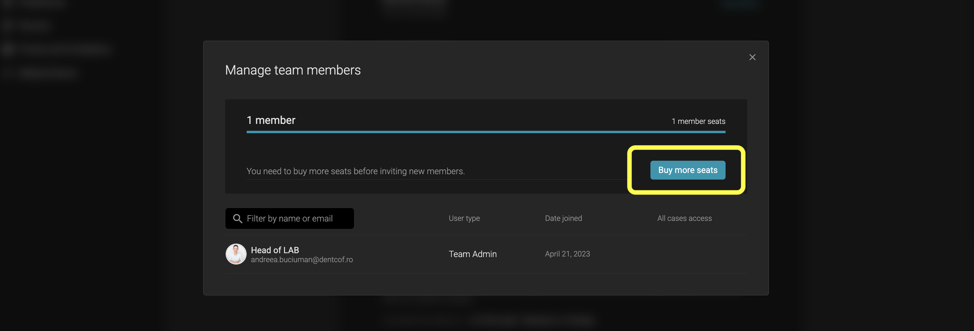 Planul Business îți permite să centralizezi toți pacienții, cazurile și membrii echipei într-un singur spațiu de lucru comun. Este configurarea ideală pentru clinici cu mai mulți medici sau colaboratori.